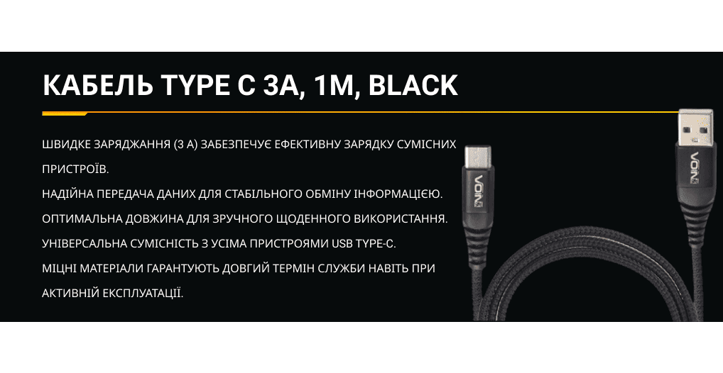 Кабель VOIN CC-4201C BK призначений для швидкого заряджання та передачі даних між пристроями з роз'ємом USB Type-C. Завдяки високоякісним матеріалам та підтримці струму до 3 А, кабель забезпечує надійність і ефективність у щоденному використанні.