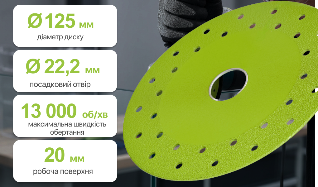 • Рекомендована швидкість обертання: 10 000–13 000 об/хв